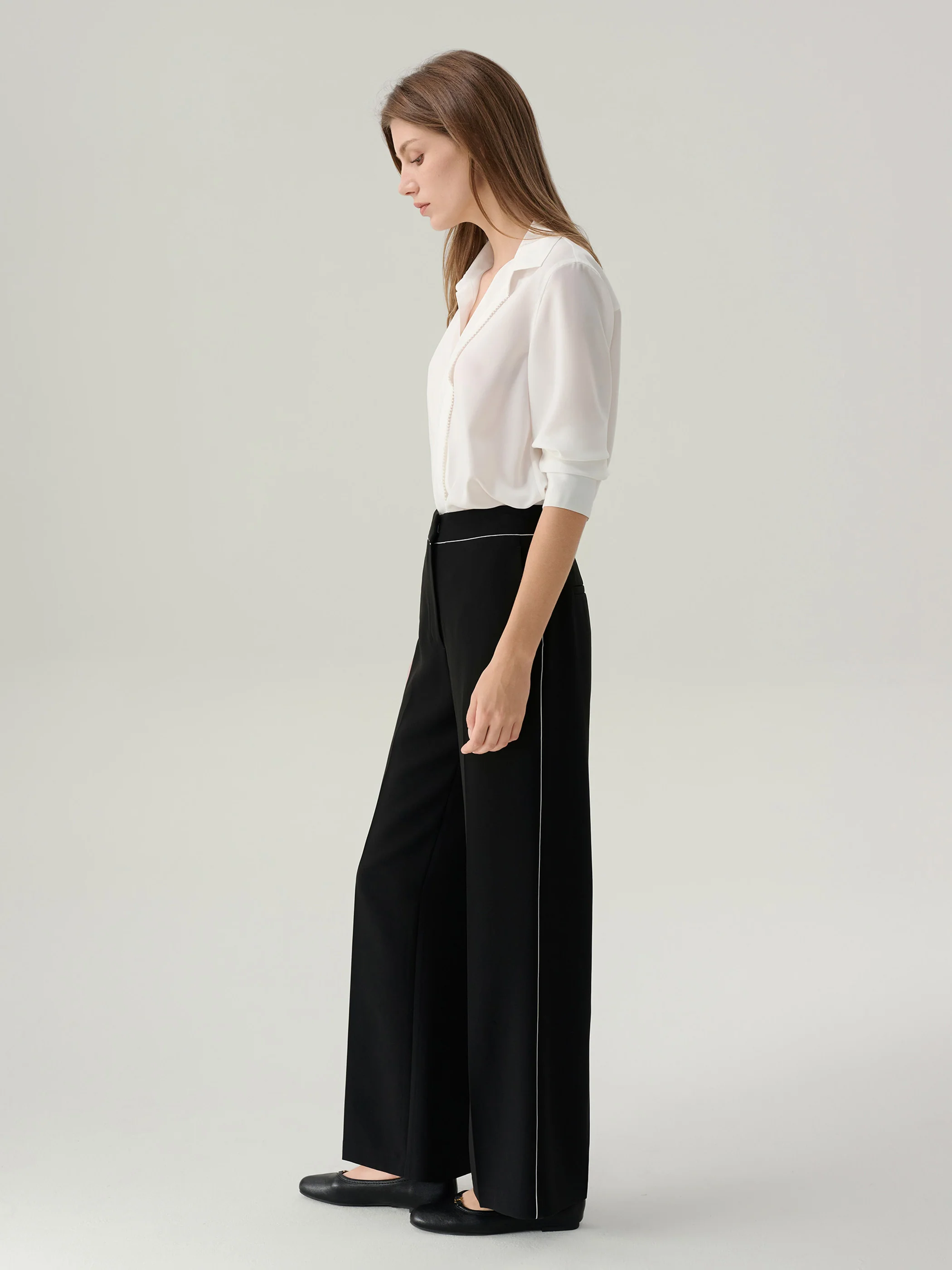 Light and architectural, the Dahlia Pleated Button Down Blouse is cut from airy pleated georgette with a soft hand and fluid movement. A concealed placket keeps the front clean and minimal, while the miniature pearl trim adds an elegant touch. Designed with a curved hem and buttoned cuffs, it layers easily under tailoring or stands alone for a quiet statement.