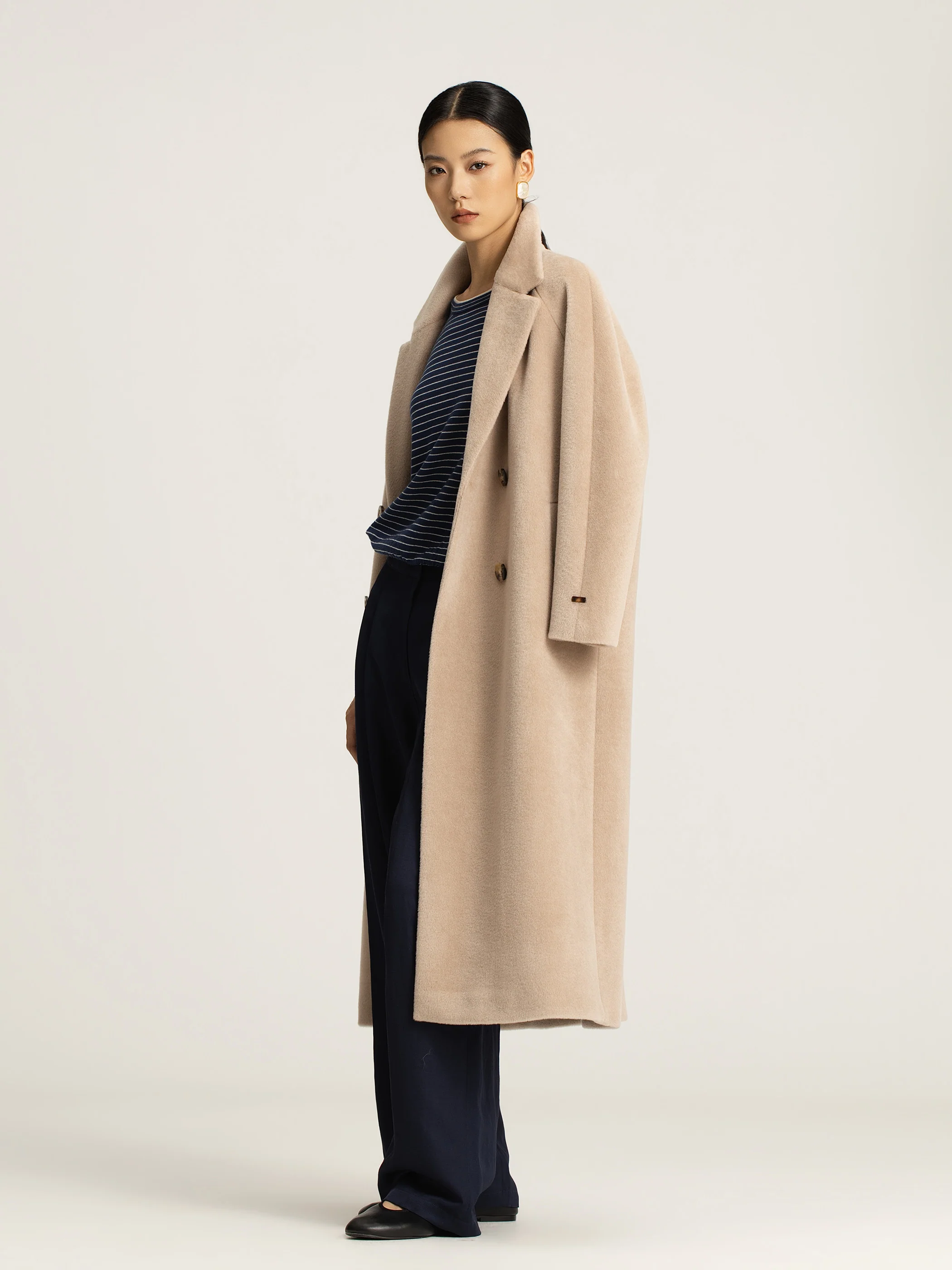 Effortlessly refined, the Maelle Wool Silk Coat brings elegance to everyday layering. The fluid silhouette is defined by a soft notch lapel, raglan sleeves, and a centre back vent that encourages movement. A heavy drape gives it presence without bulk, whether worn over denim or tailored trousers.
