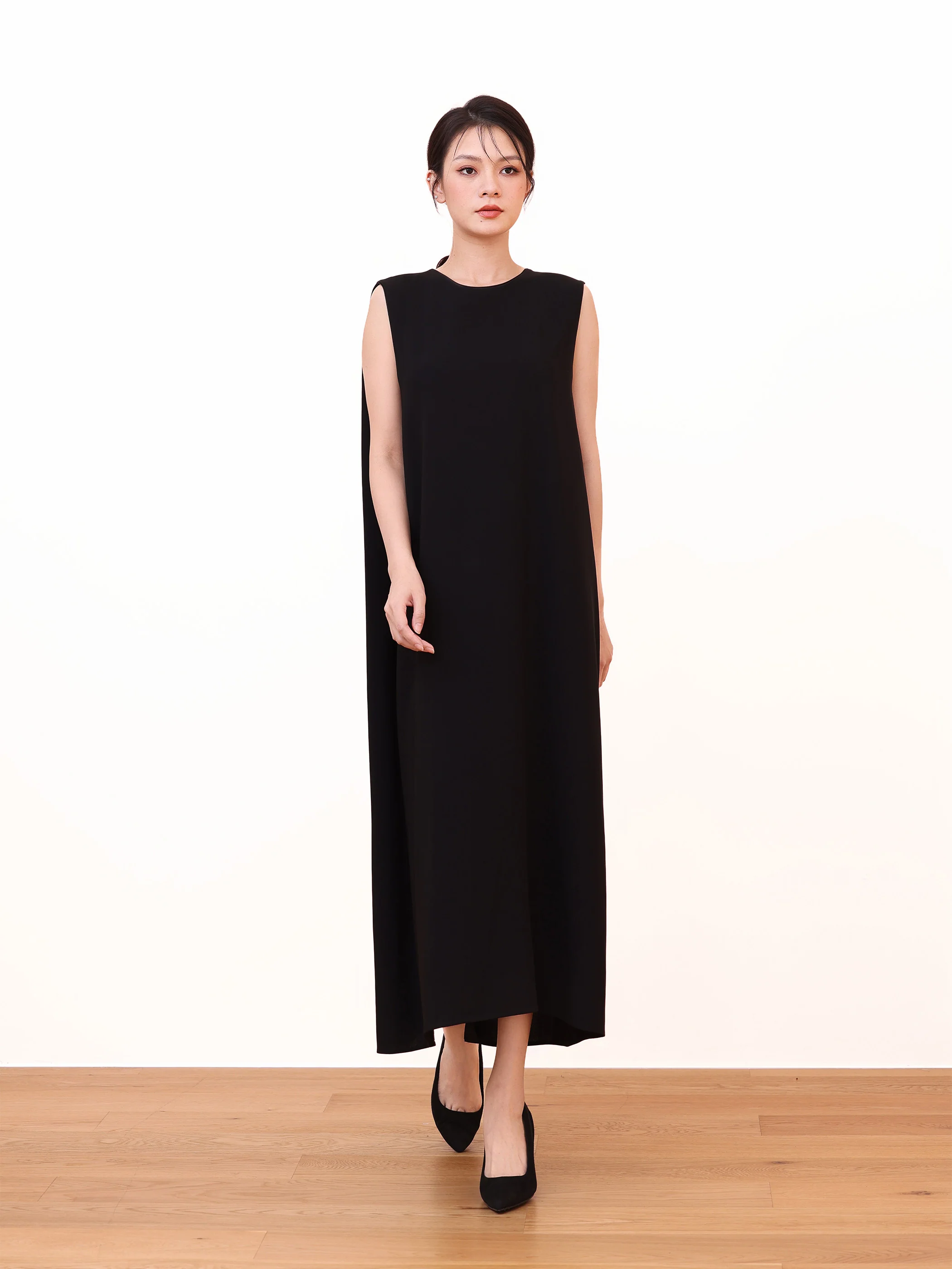 SLEEVELESS CREW NECK DRESS WITH BACK PANEL DETAIL