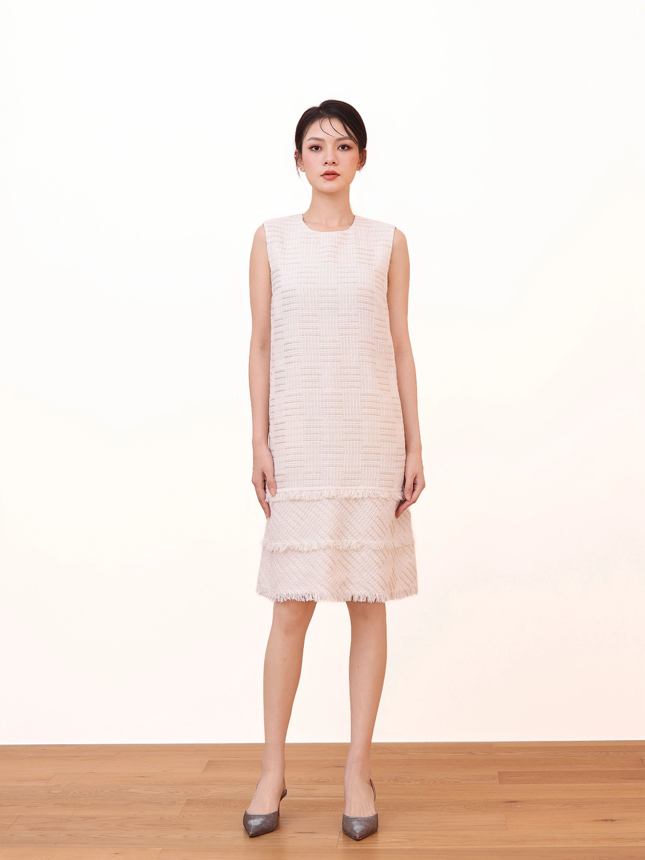 SLEEVELESS TWEED DRESS WITH FRINGE DETAIL